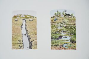 While still recognisably a farmed landscape, the animals doing the grazing will be different. Sheep will still be present, but in lower numbers, and only grazing on the enclosed land within the farm boundaries. Up on the commons, a scattering of hardy cattle and fell ponies, grazing alongside a low density of wild deer will mimic a natural, wild grazing regime that occurred here thousands of years ago. These heavy-footed animals will help to distribute the seeds of trees and flowers and create gaps for them to grow, keeping the landscape diverse.