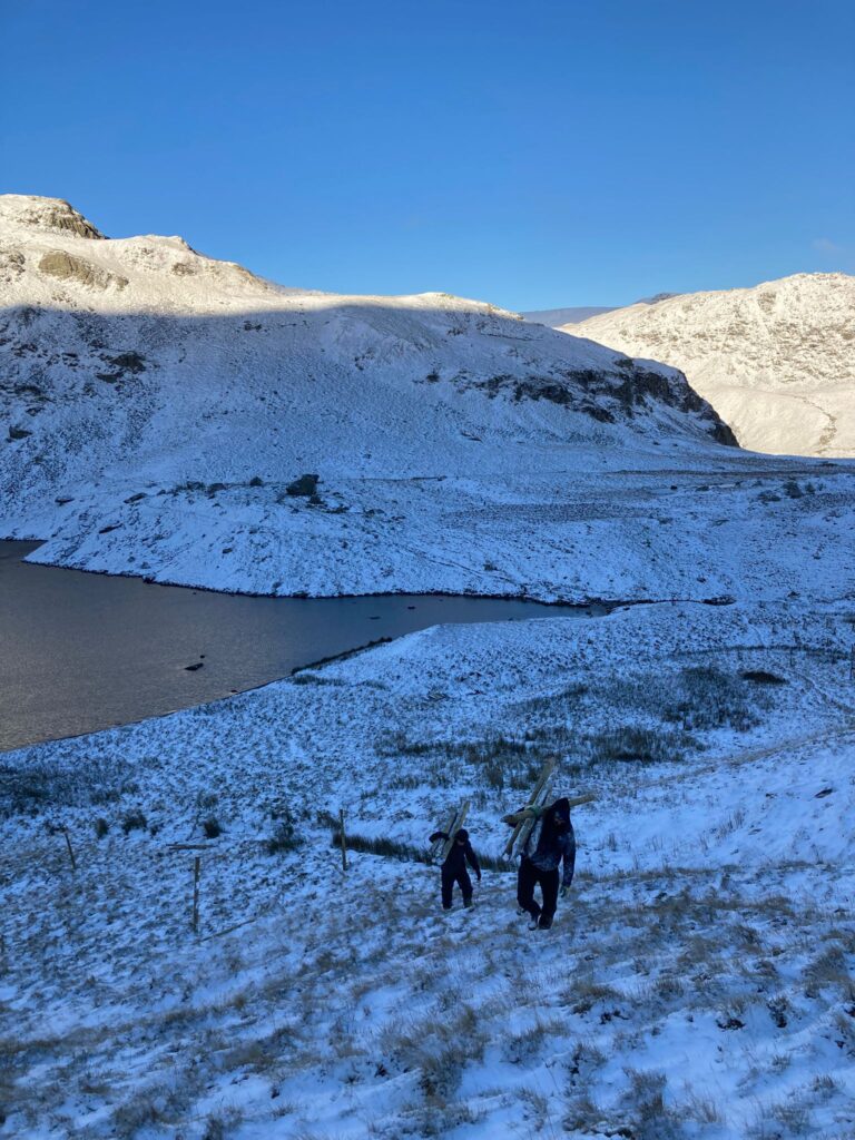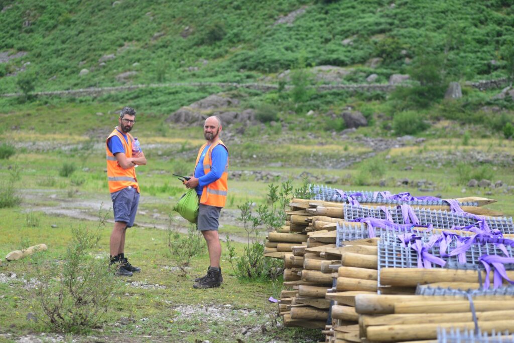 The Fix the Fells team kindly came to help us build wooden tree enclosures in Riggindale Valley at the top of Haweswater reservoir.