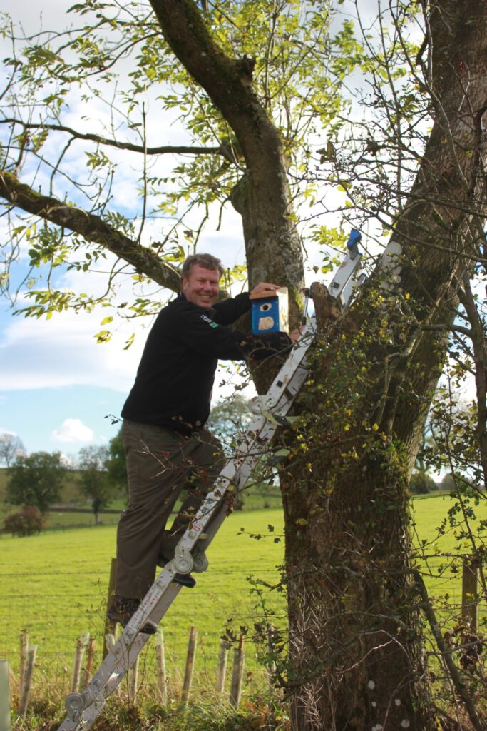 Image credits: 1) Jamie in bluebell woodland, thanks to Cumbria Wildlife Trust. 2) Jamie on his 200 mile Coast to Coast adventure. 3) Bea with Jamie’s Sessile Oak in Celebration Wood, thanks to Matthew Scott. 4) Jamie installing a bird nestbox into an Ash tree, thanks to Cumbria Wildlife Trust.